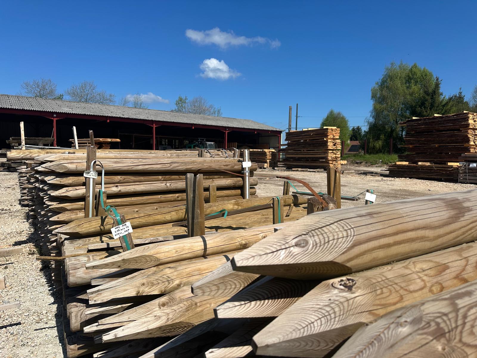 Besoin de poteaux pour vos aménagements extérieurs ? Nous disposons aussi de rondins épointés prêts à l’emploi.