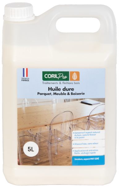 – Liquide blanchâtre (incolore après séchage. Fonce légèrement la teinte naturelle du bois)
