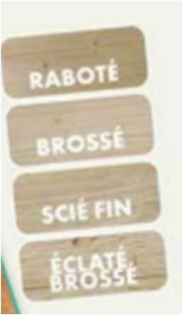 • Différentes finitions : vieux bois, …